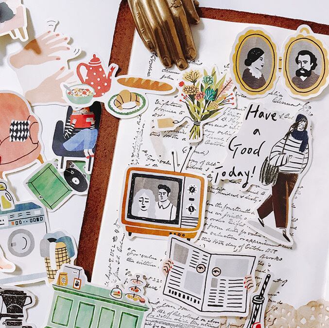 日常イラストステッカー 日記ステッカー 可愛いコラージュ日記 ノート